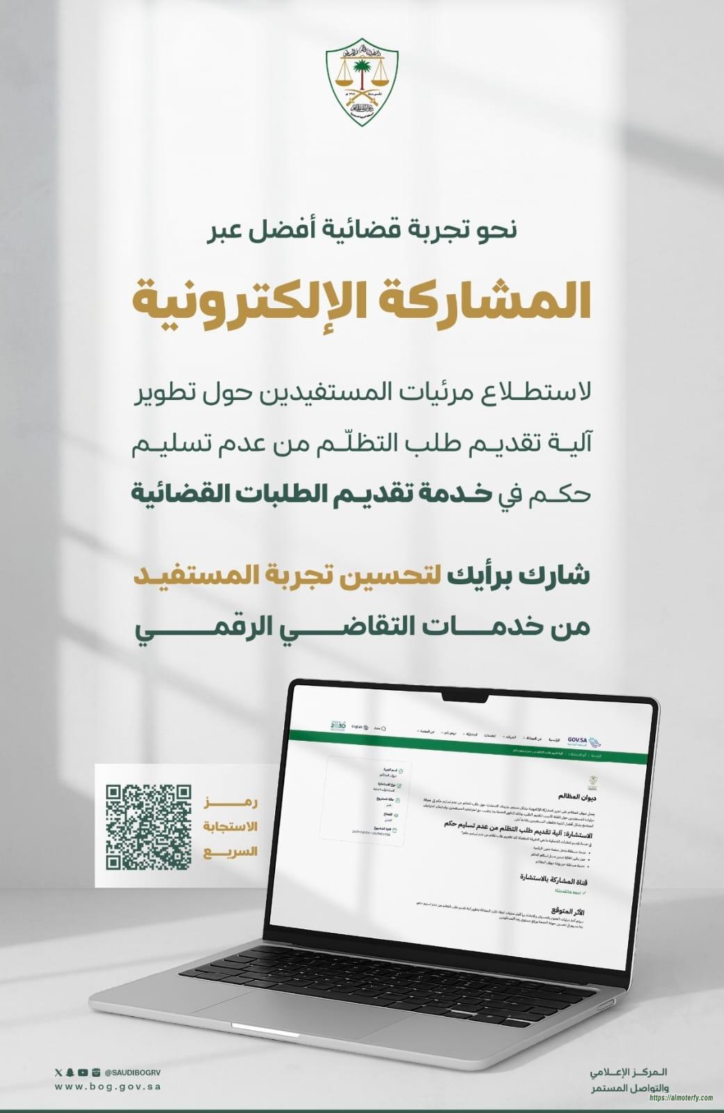- 2026-04-05 ديوان المظالم يدعو المستفيدين للمشاركة في تطوير خدمة تقديم الطلبات القضائية عبر منصة مُعين الرقمية