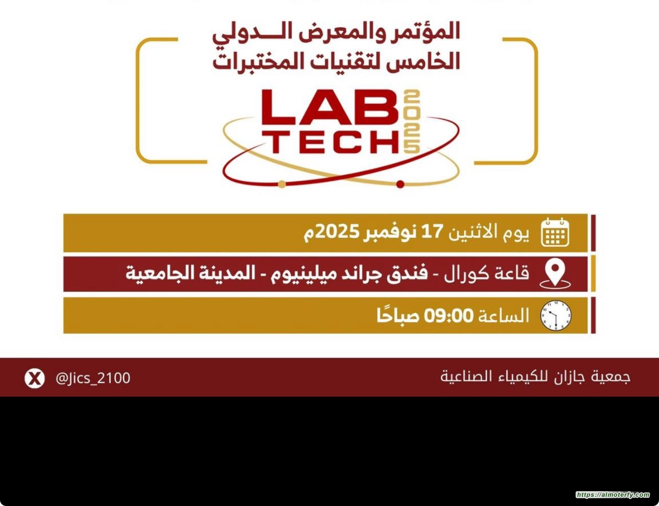 - 2025-11-15 بشراكة مع جامعة جازان.. انطلاق المؤتمر والمعرض الدولي لـ "LabTech" تحت شعار "الابتكار في تقنيات المختبرات" الاثنين المقبل