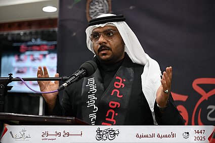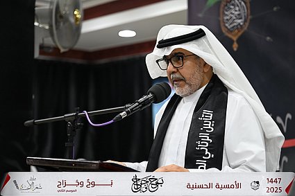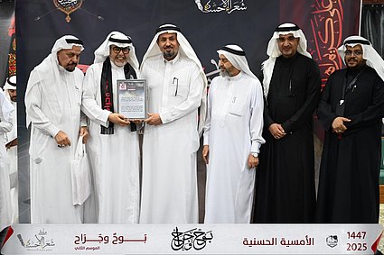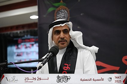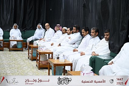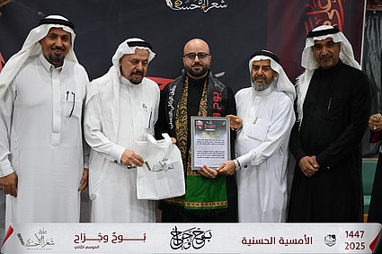 نظّم ملتقى شعراء الأحساء بالشراكة مع الحسينية الجعفرية بأبي الحصى الحفل التأبيني الرثائي في موسمه الثاني تحت عنوان "بوح وجراح"، وهو أمسيةٌ شعرية في رحاب الإمام الحسن المجتبى عليه السلام، وذلك مساء يوم الجمعة الموافق ٨ أغسطس ٢٠٢٥م، في حضور نخبوي من المشايخ والأدباء والشعراء والمهتمين، وقد استهلت الأمسية بآيات عطرة من الذكر الحكيم تلاها القارئ الدولي المجيد السيد حسن الحاجي، ثم تقدَّم الشاعر الأستاذ إبراهيم بن حسن الحسين الذي أدار الأمسية بأسلوب رائعٍ وممتع، وافتتحت الأمسية الشعرية مع الشاعر السيد مجتبى المبارك الذي قدم نصًّا حسنيًّا بديعًا في قافيته اللامية، ثم قدّم الشاعر السيد علي الحسن قصيدته النونية التي تألق بها في رحاب الإمام عليه السلام، بعدها قدّم الشاعر الأستاذ نعيم المؤمن قصيدة من أبهى القصائد الشعبية لاقت تفاعل الحضور، وقد أبدع الشاعر الأستاذ أحمد اللويم رئيس جمعية ابن المقرب للتنمية الأدبية في قصيدته الشعرية الفارعة التي قدّمها بعنوان: "مسبحة حزن"، بعد هذه الجولة الشعرية الأولى استمع الحضور للتواشيح الإنشادية التي أبدع في إلقائها المنشد الأستاذ حسين اليوسف، بعدها انطلقت سفينة الشعر في الجولة الشعرية الثانية حيث تألّق الشاعر الدكتور ناصر النزر في رائعته الشعرية البديعة، وكانت القصيدة الشعرية الشعبية الأخيرة للشاعر الأستاذ أبو مظاهر الأحسائي ألقاها وسط تفاعل كبير من الحضور.
