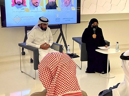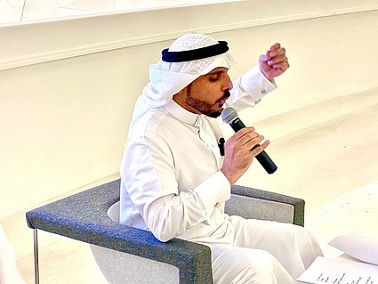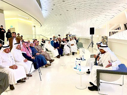 احتفاءً باليوم العالمي للغة العربية، أقامت جمعية ابن المقرب للتنمية الأدبية والثقافية أمس الأربعاء 17 ديسمبر 2025م أمسية لغوية شعرية في مكتبة إثراء بمركز الملك عبدالعزيز الثقافي العالمي، برعاية كريمة من الدكتور إبراهيم المسلمي، وأدارها الشاعر عبدالكريم الحجاب.