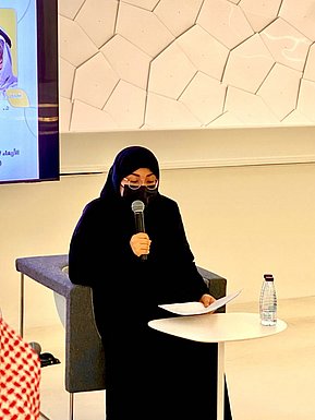 ثم تقدمت الشاعرة فاطمة رضوان فألقت عدة نصوص، من بينها قصيدتها «في اللغة»، التي قدّمت اللغة في صورة موسيقية شفيفة: