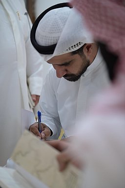 وهرع بعدها الحضور للاصطفاف أمام منصات الشعراء لنيل تواقيع مجموعاتهم الشعرية.