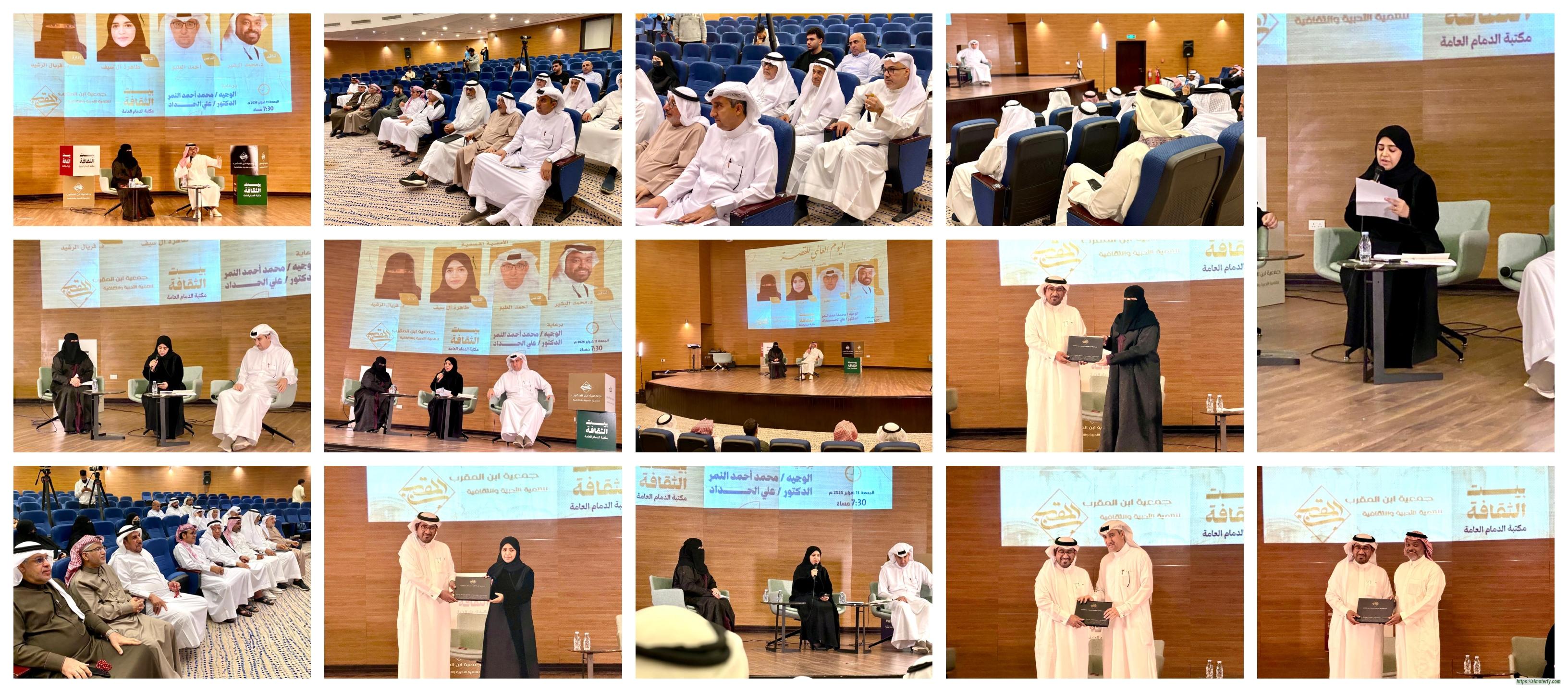 افتتحت جمعية ابن المقرب للتنمية الأدبية والثقافية مقرَّها الجديد في مدينة الدمام بفعالية (ض) احتفاءً باللغة العربية في يومها العالمي ، الفعالية التي دأبت الجمعية على إقامتها سنويًا ، وذلك مساء يوم الإثنين الموافق 18/12/2023م، وقد تضمنت الفعالية ندوة حوارية وأمسية شعرية.