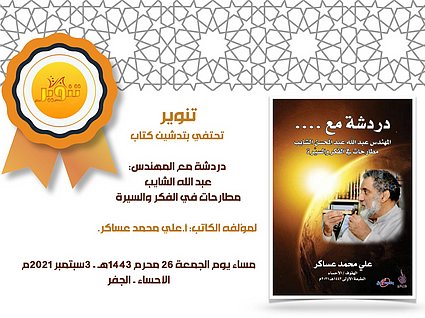 في أمسية ثقافية أقيمت بمدينة الجفر، تلك المدينة التي تُعد من منارات الفكر والأدب والتاريخ في واحة الأحساء، التقينا بالكاتب والباحث (علي محمد عساكر) للحديث حول كتابه «دردشة مع المهندس عبد الله الشايب: مطارحات في الفكر والسيرة»، وهو عمل توثيقي متميز انبثق من سلسلة حلقات حوارية مصوّرة أجراها الكاتب عساكر مع المهندس الشايب في خمسة أجزاء كل جزء يمتد إلى الساعة، ثم فُرغت لاحقا وحُوّلت إلى كتاب صدر في طبعته الأولى سنة (1442هـ/2021م).